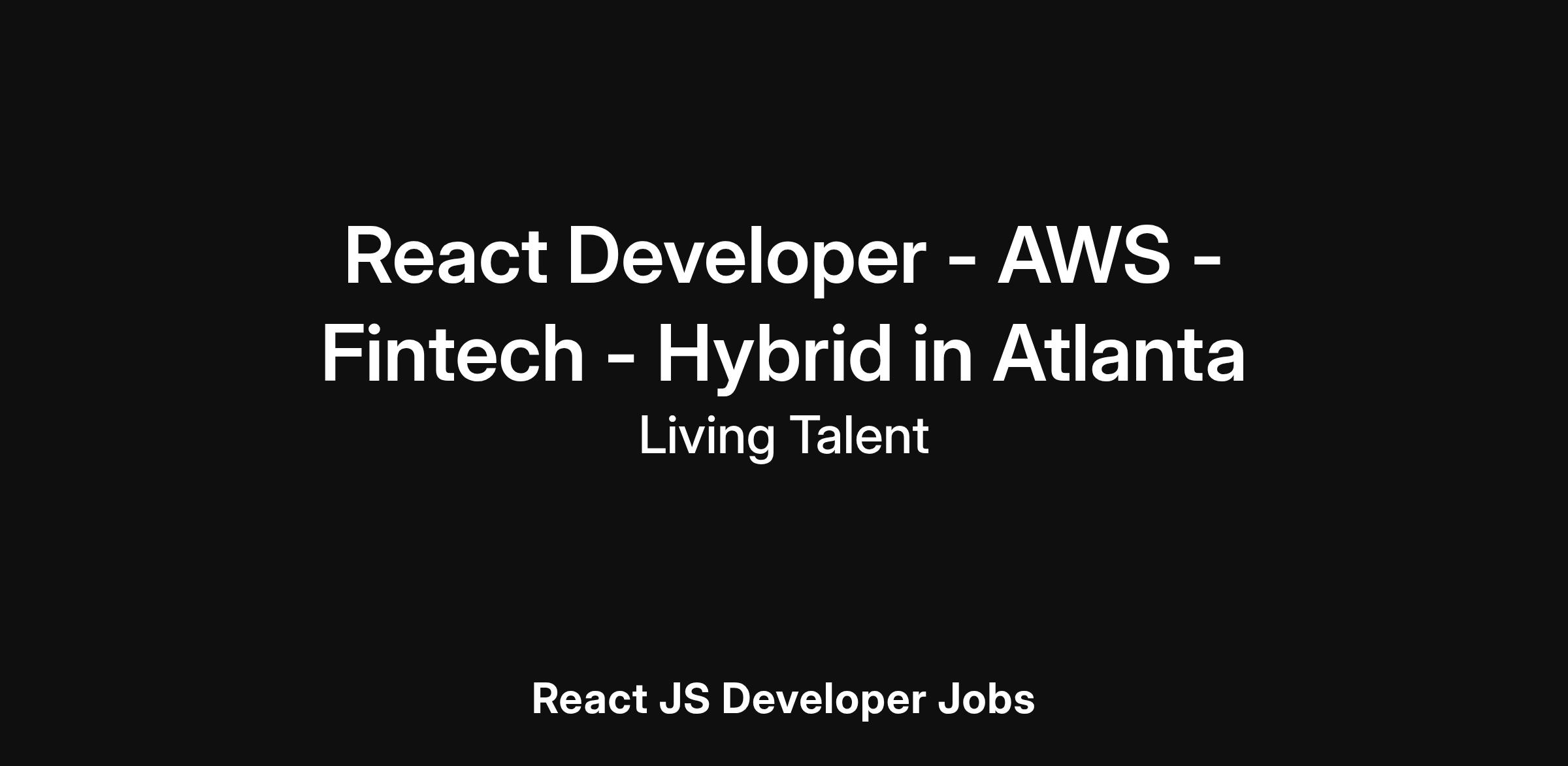 React Developer - AWS - Fintech - Hybrid in Atlanta