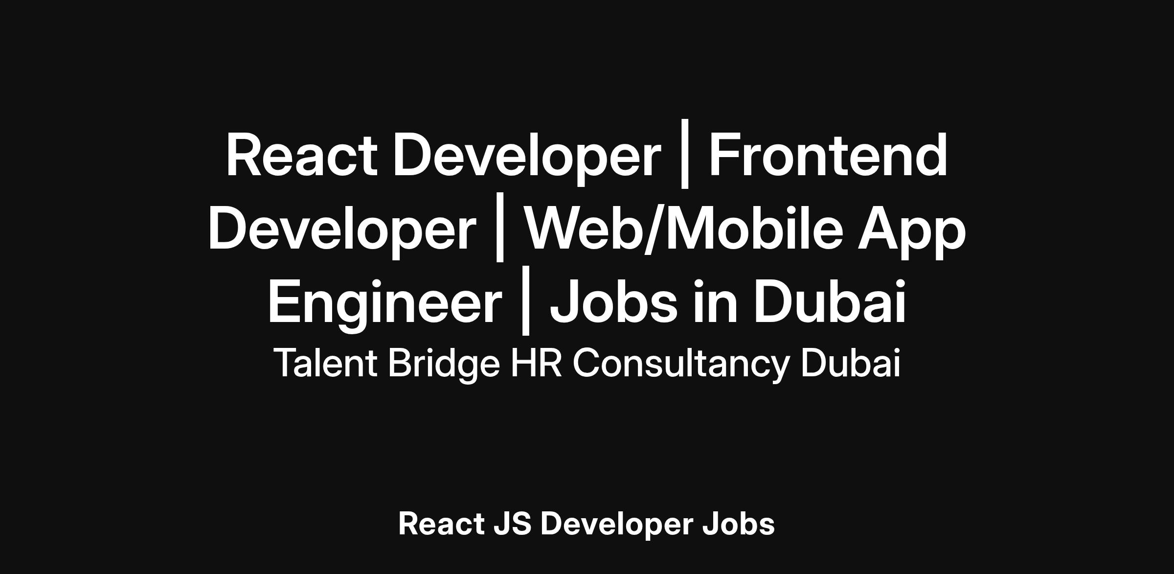 React Developer | Frontend Developer | Web Application Engineer | Jobs in Dubai